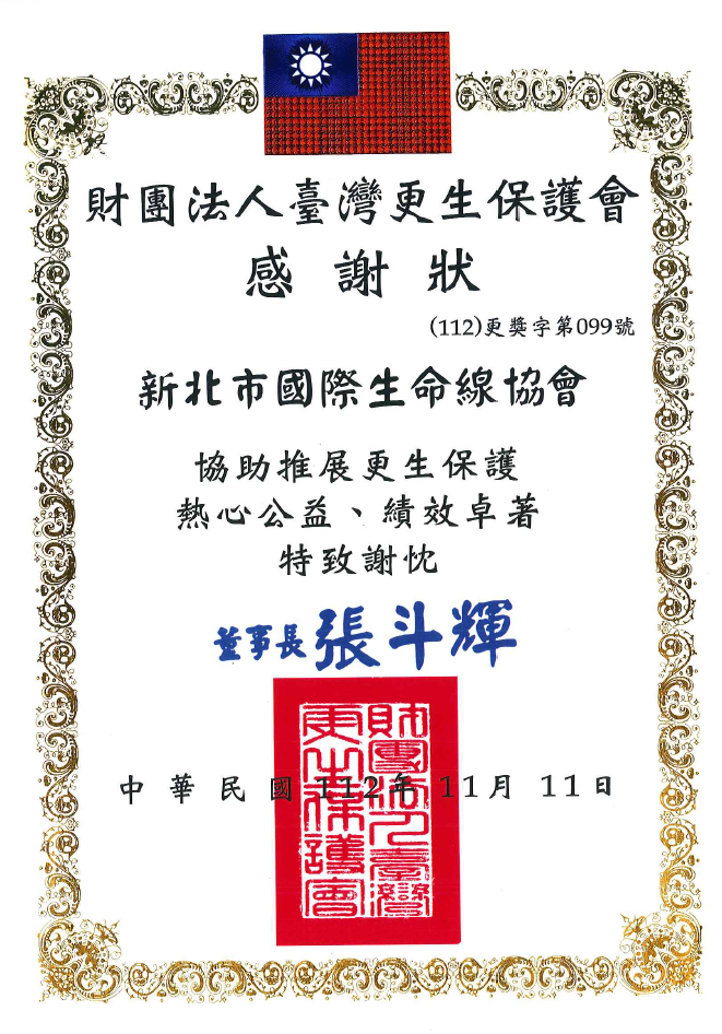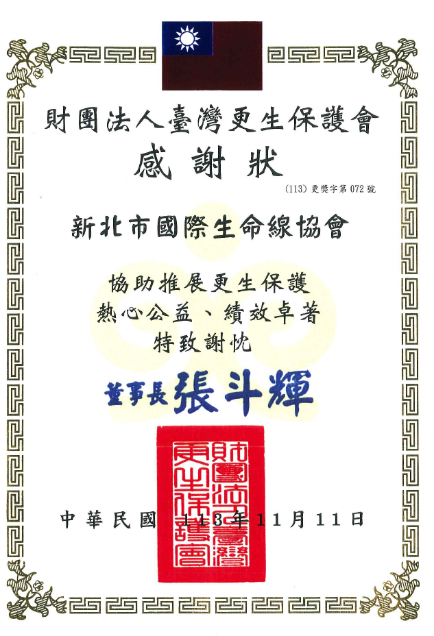 ●113年「謝謝你跟我說」生命線青少年文字協談-開創協會獎(社團法人國際生命線台灣總會)