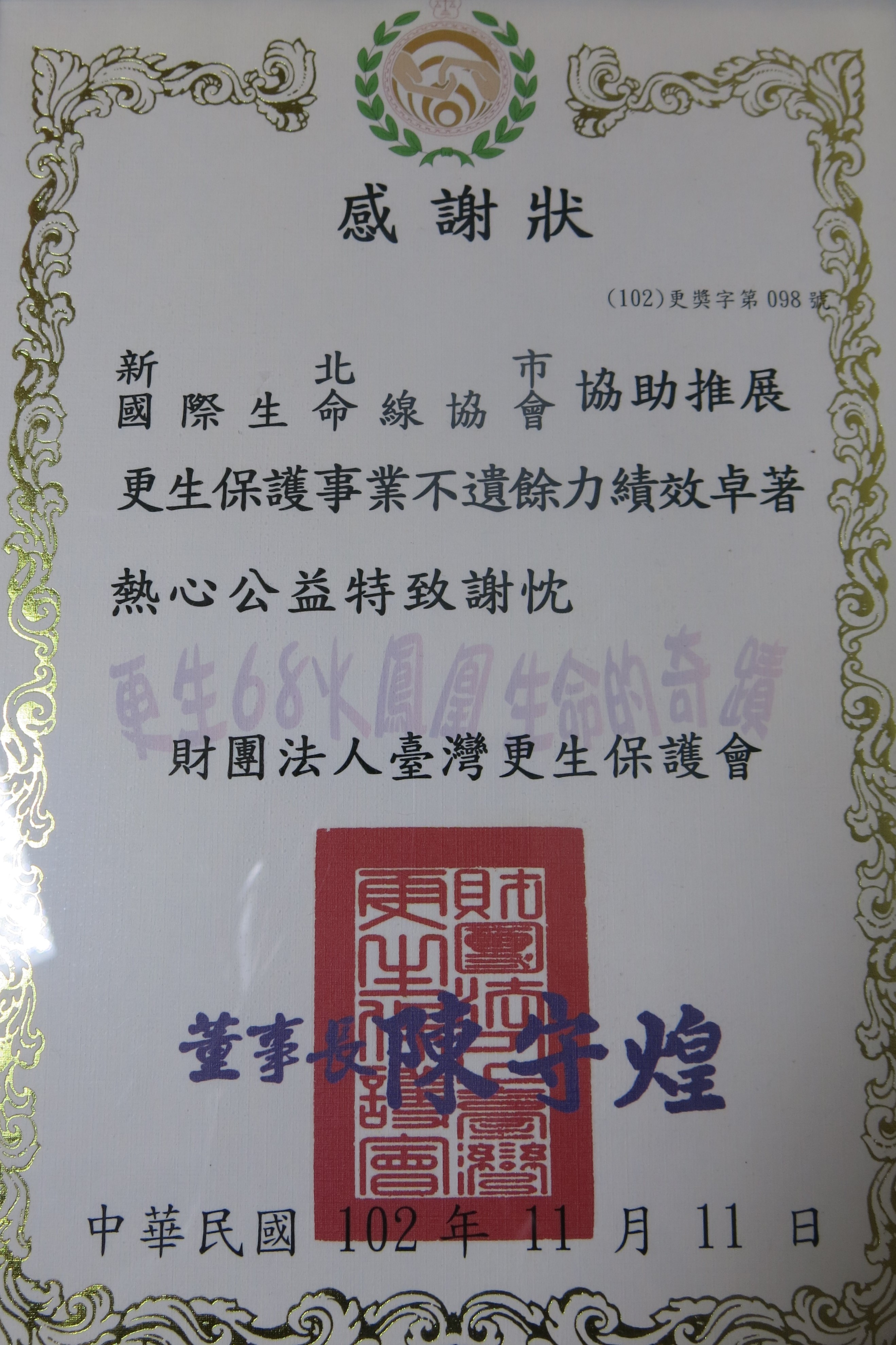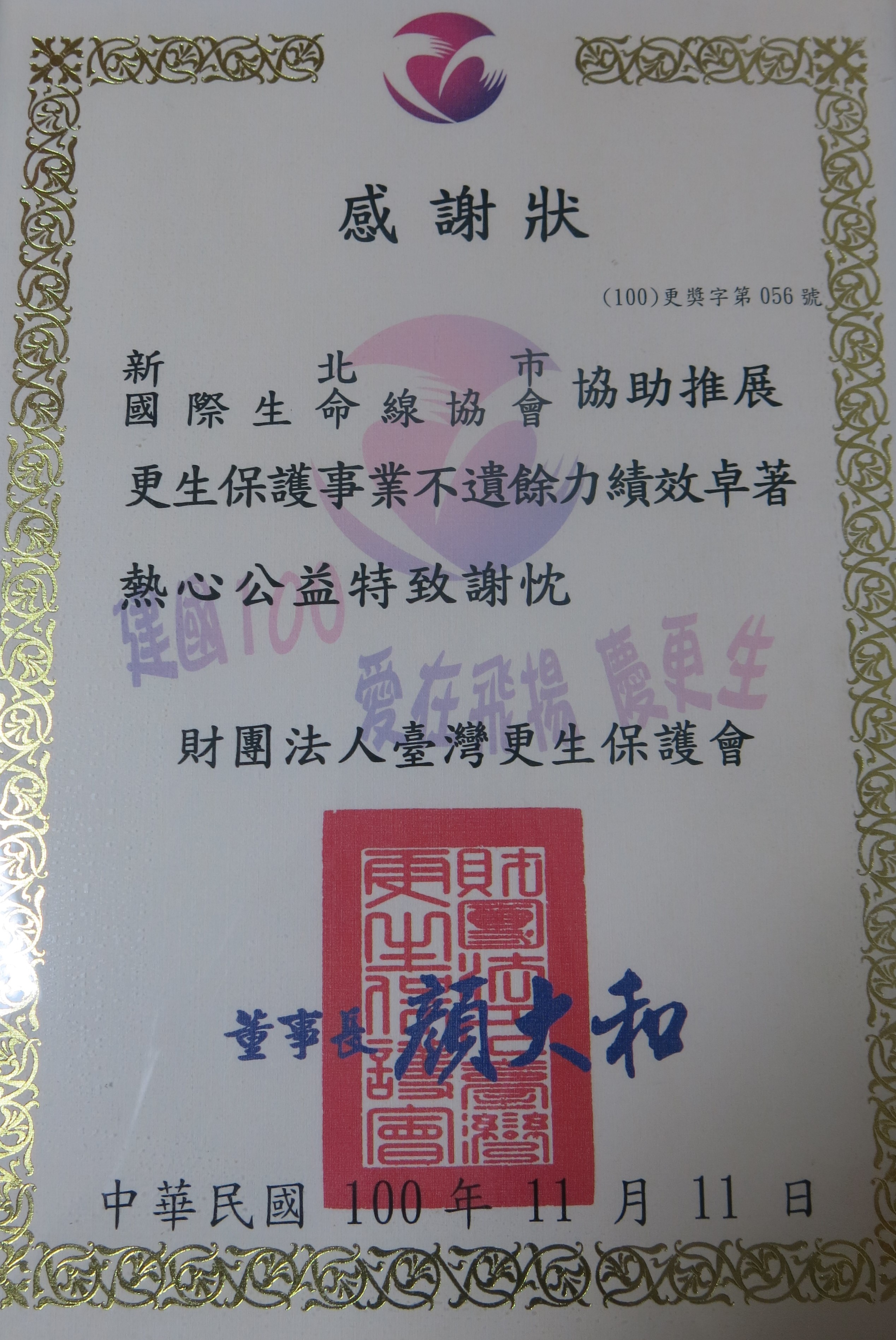 ●100年協助推展更生保護事業(財團法人臺灣更生保護會)