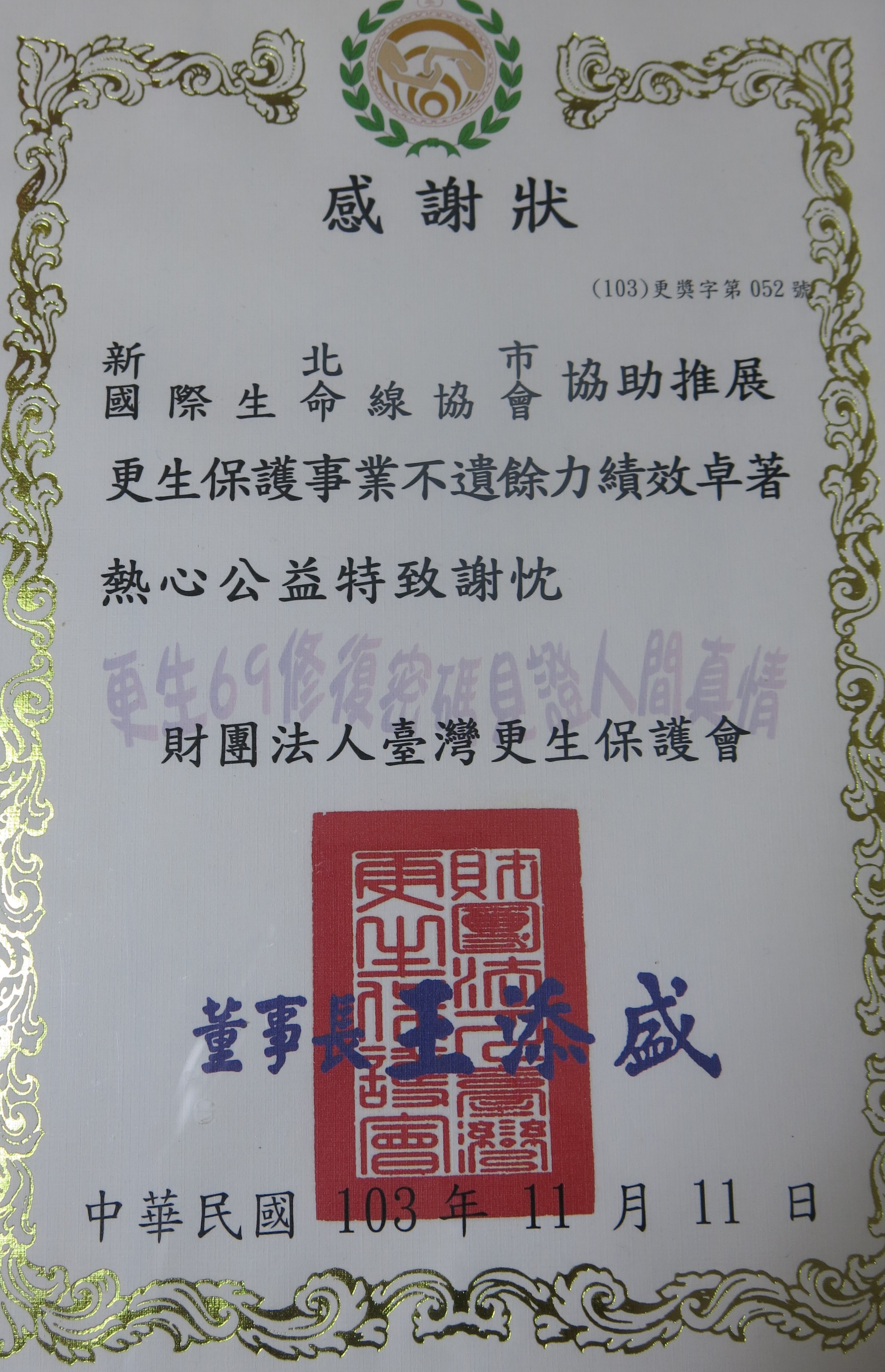 ●103年協助推展更生保護事業(財團法人臺灣更生保護會)