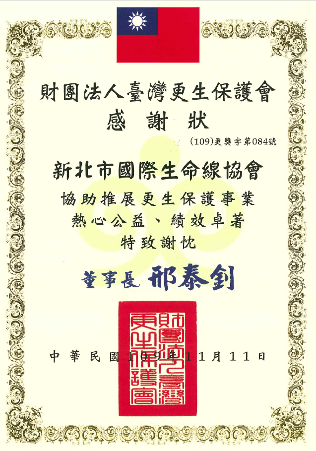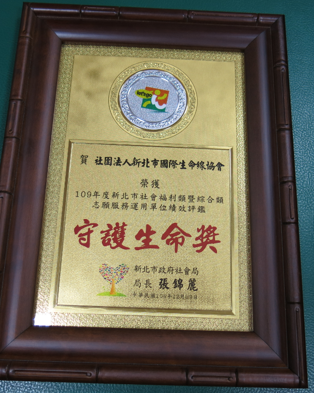 ●109年社會福利類暨綜合類志願服務運用單位評鑑績優-守護生命獎(新北市政府社會局)