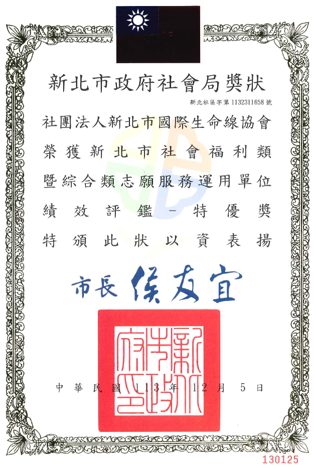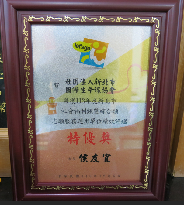 ●113年社會福利類暨綜合類志願服務運用單位續效評鑑-特優獎(新北市政府社會局)