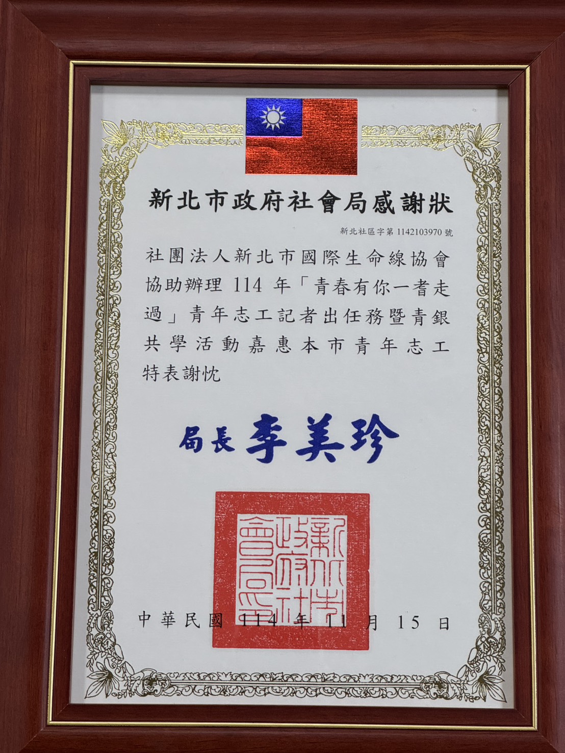 ●114年「謝謝你跟我說」生命線青少年文字協談-開創協會獎(社團法人國際生命線台灣總會)