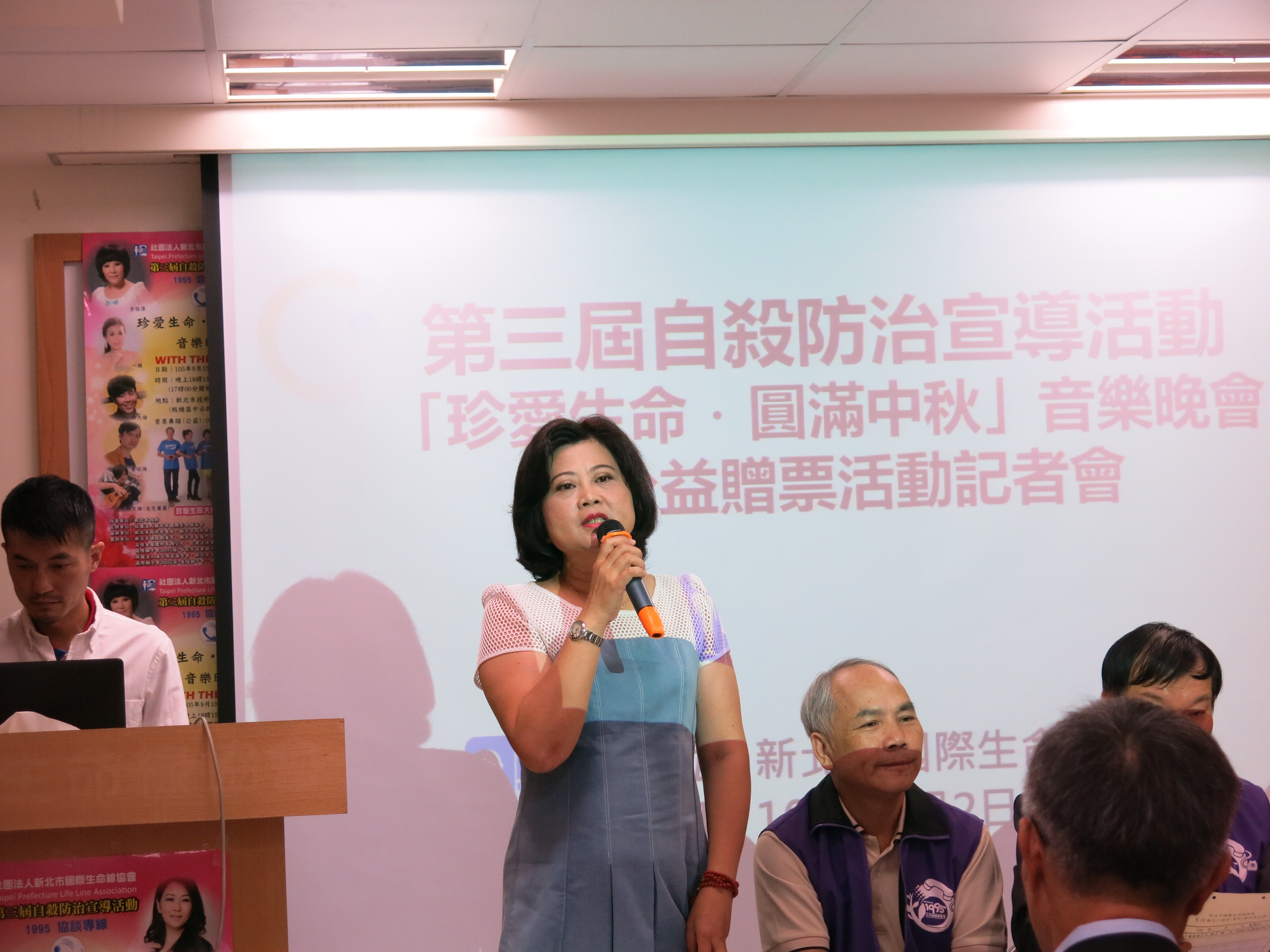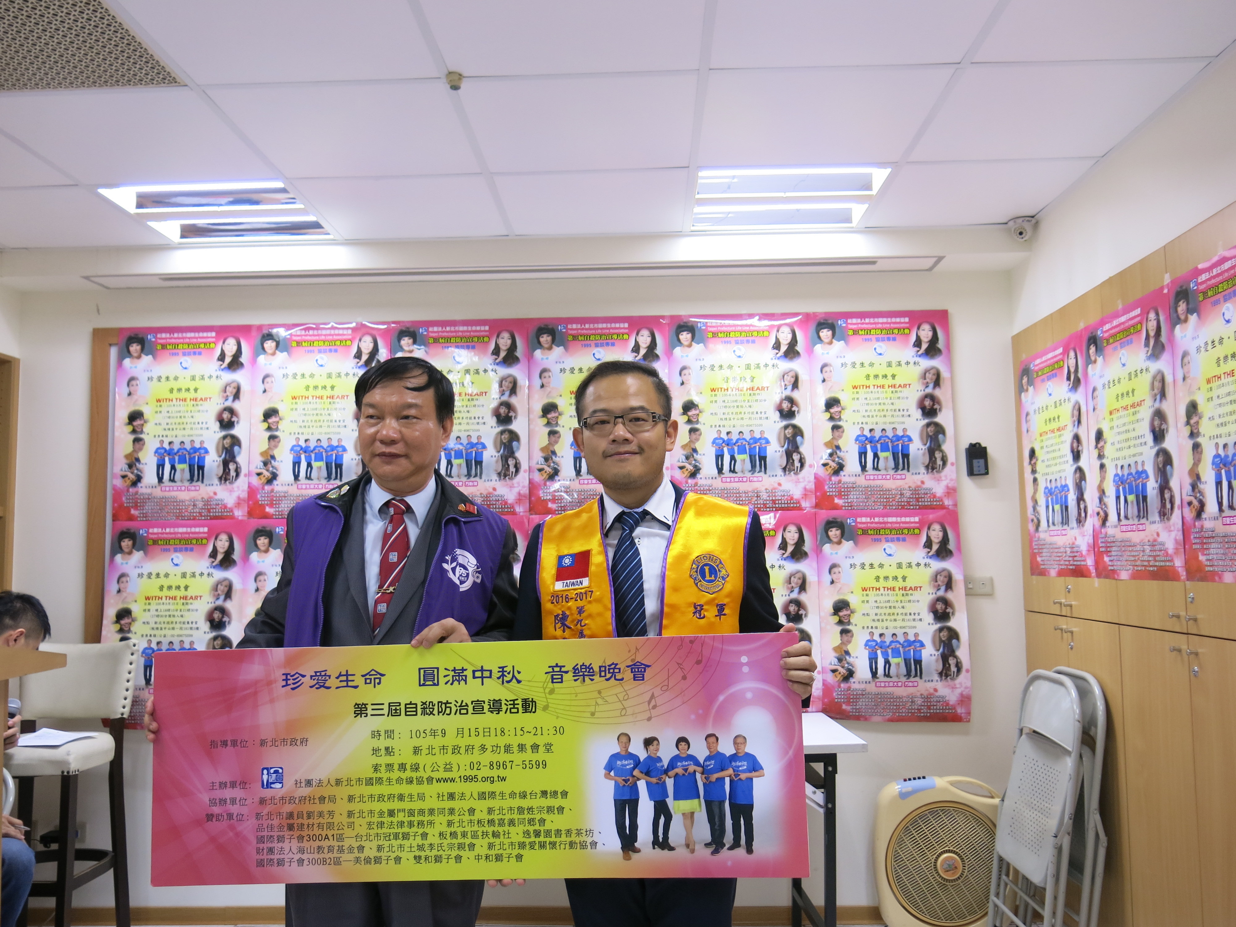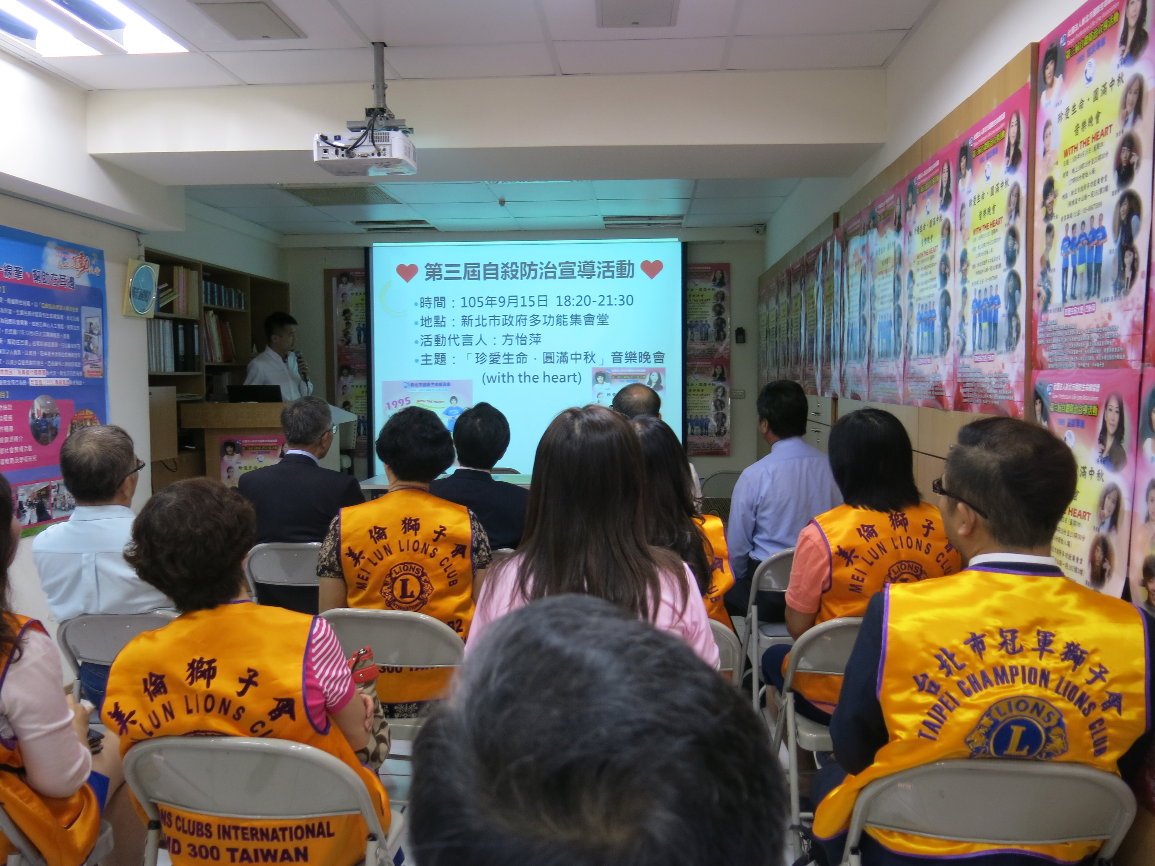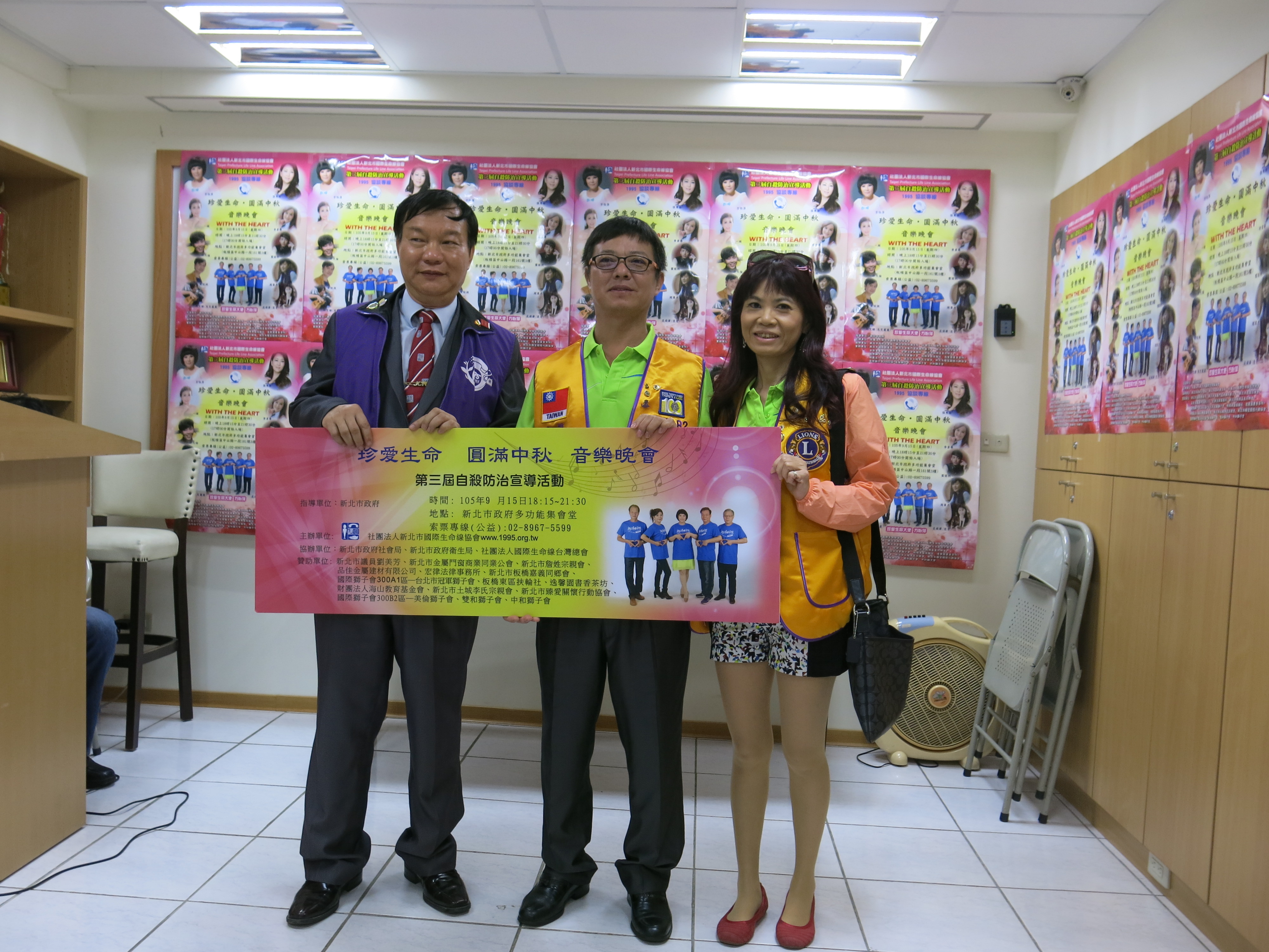 今(105)年賡續秉持著社會各界對宣導活動的肯定支持,廣邀職業公會、公司行號、事務所、社會團體(獅子會、扶輪社、社會服務及慈善團體)、宗親會、同鄉會、教育基金會等加入贊助單位,配合世界自殺防治日之主題「聯繫Connect、溝通Communicate、關懷Care」,選定在9月15日(星期四)中秋節晚上假新北市政府多功能集會堂,舉辦「第三屆自殺防治宣導活動:珍愛生命.圓滿中秋」音樂晚會,此次音樂晚會因屬公益性質,特邀請社會福利團體於9月2日在協會舉行贈票儀式,讓這份愛的饗宴也能夠分享給社會弱勢族群。